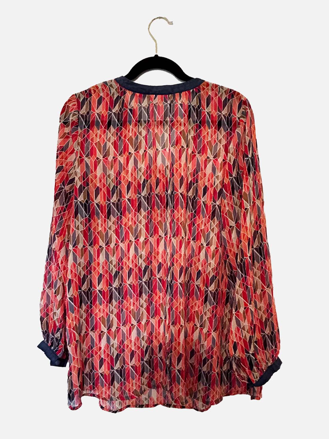 V-neck Tunic Top with Multi Color Print. Long sleeves.